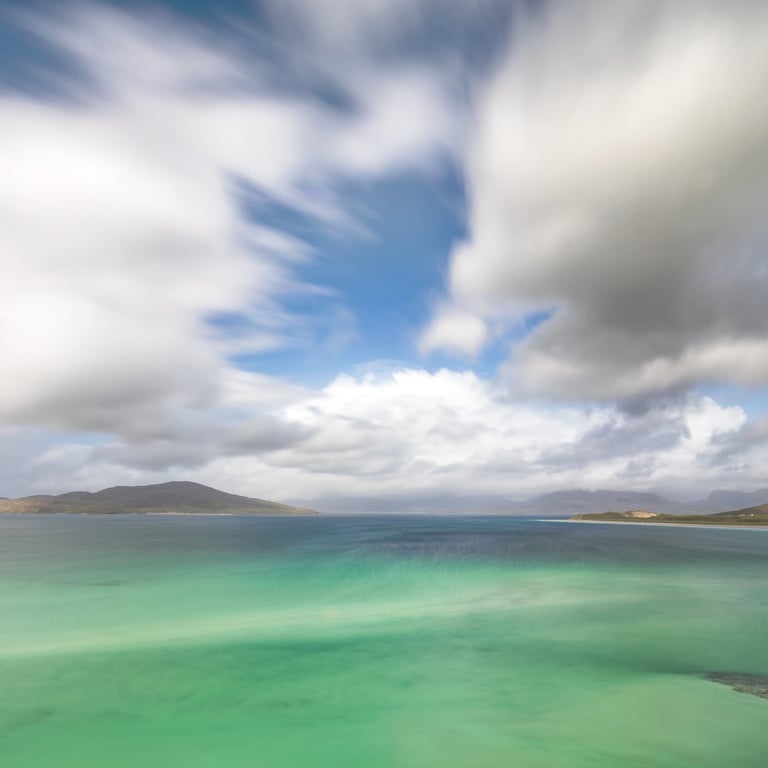 Elle mêle poses longues, instants spontanés et compositions plus graphiques, selon l’inspiration du moment et la nature du lieu. J’y explore des paysages puissants, maritimes ou intérieurs, guidé par une seule envie : traduire l’émotion ressentie face à l’immensité écossaise.