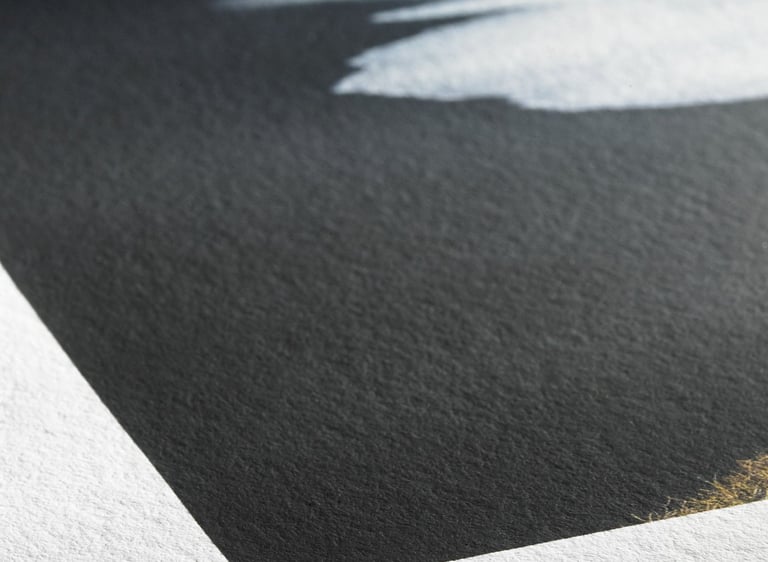 Selon l'image choisie, les tirages sont réalisés sur Hahnemühle Fine Art Baryta 325 g/m² ou Hahnemühle FineArt Photo Rag Bright White 310 g/m², selon l’image. Ces deux papiers d’art de référence garantissent une profondeur exceptionnelle, une finesse de détail remarquable et une longévité pouvant atteindre près de deux siècles.