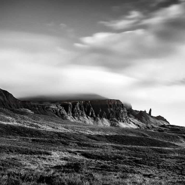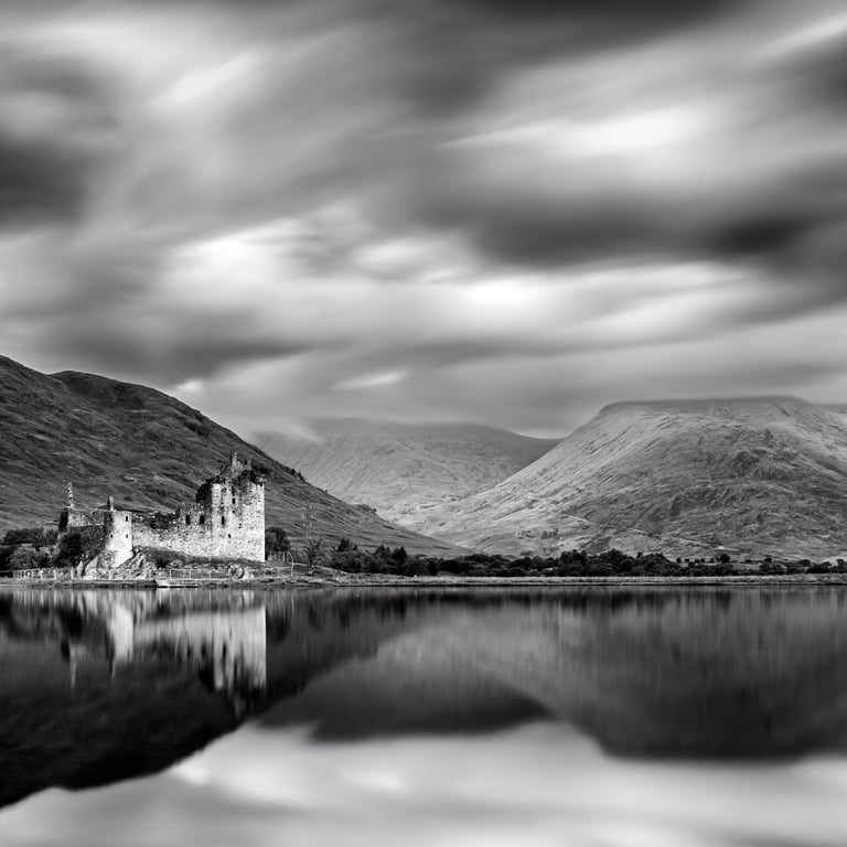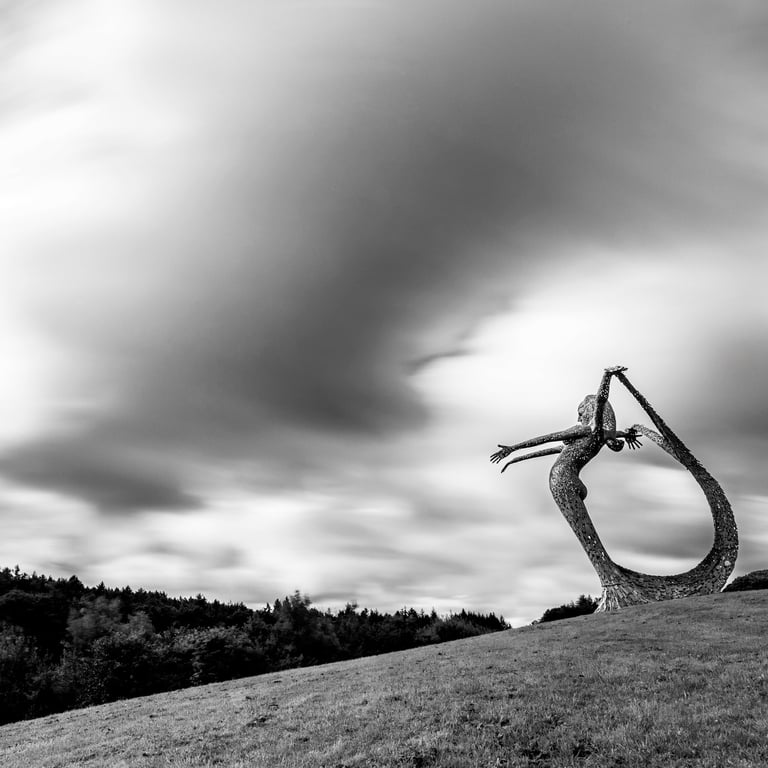 Elle mêle poses longues, instants spontanés et compositions plus graphiques, selon l’inspiration du moment et la nature du lieu. J’y explore des paysages puissants, maritimes ou intérieurs, guidé par une seule envie : traduire l’émotion ressentie face à l’immensité écossaise.